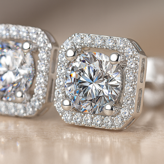 Dollcini 1 karátos D-színű moissanit „cukorkocka” fülbevaló 925 ezüstből, elegáns női köves fülbevaló mindennapra és alkalmakra