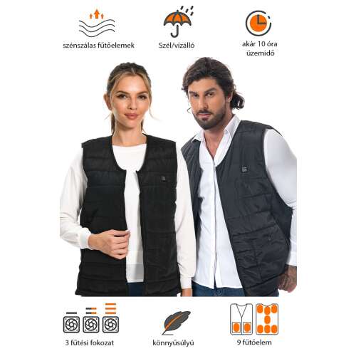 Dollcini Fűthető Női Mellény – 9 Zónás, USB Töltéssel, Fekete [A powerbankot külön kell megvásárolni]