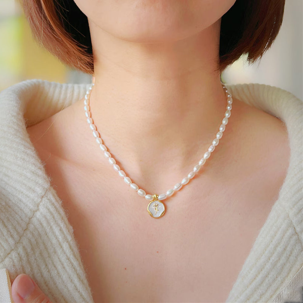 Dollcini Pearl Gyöngy Nyaklánc Virág Medállal – Rózsa vagy Tulipán