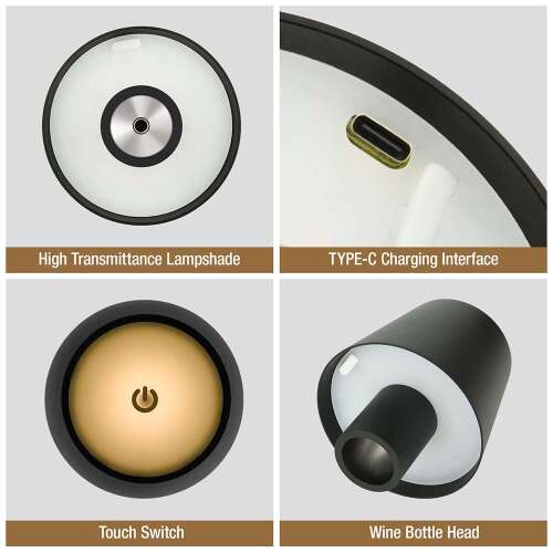 - Type-C töltőport a lámpa alján, amely támogatja a gyors és kényelmes töltést.