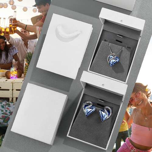 Szív Nyaklánc és Fülbevaló Szett – Elegáns Női Ékszer Ajándékdobozban